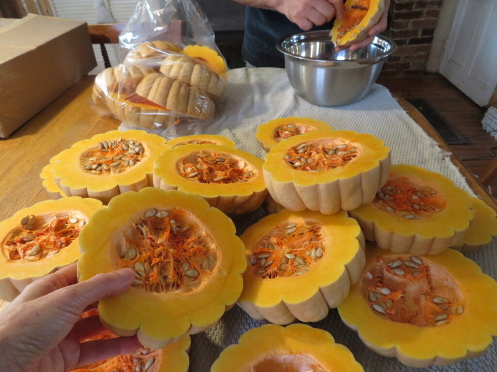 Pour l’extraction de certaines semences, il existe des machines. Plus l’entreprise semencière est grosse plus ces machines sont utilisées. La chair ne peut pas être récupérée et reste dans les champs ou est mise au compost. C’est de la bonne nourriture et nous ne voulons pas gaspiller. Nous n’utilisons aucune machine. Chez nous, toute l’extraction des semences se fait à la main, un légumes à la fois, un fruit à la fois. Ce sont les tomates, piments, poivrons, courges, melons d’eau et cantaloups. Nous faisons autant de transformation, cannage, congélation et déshydratation que nécessaire pour nos besoins. Nous nous efforçons ensuite de donner tout ce que nous pouvons à notre entourage ainsi qu’à l’aide alimentaire de notre région.