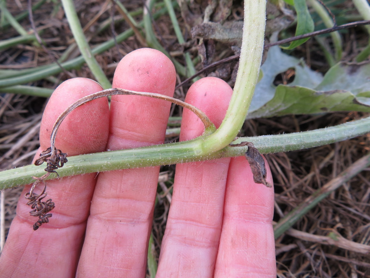 Watermelon with pale orange flesh. It is not the sweetest of watermelons, but it is very tasty and addictive. Once you start eating them you don’t want to stop. Can become very large. 10 to 26 pounds. Well suited for zone 4b. Harvest when the first tendril and the small leaf are dry.