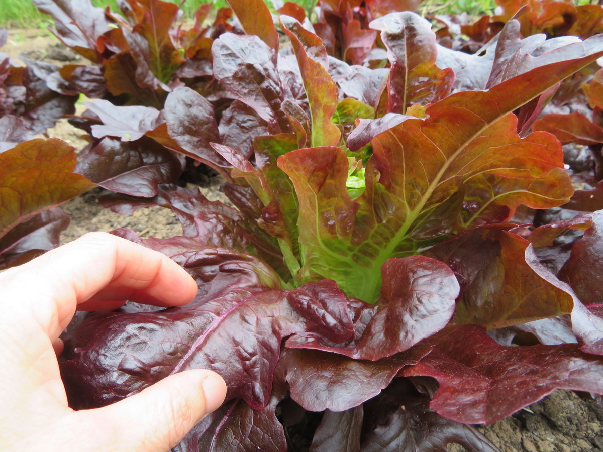 Very dark red oak leaf lettuce. Easily harvested one leaf at a time. Tolerates hot temperatures. A cross between Emerald Oak and Merlot. Developed by Frank Morton. Well suited to aeroponics. 53 days to maturity.