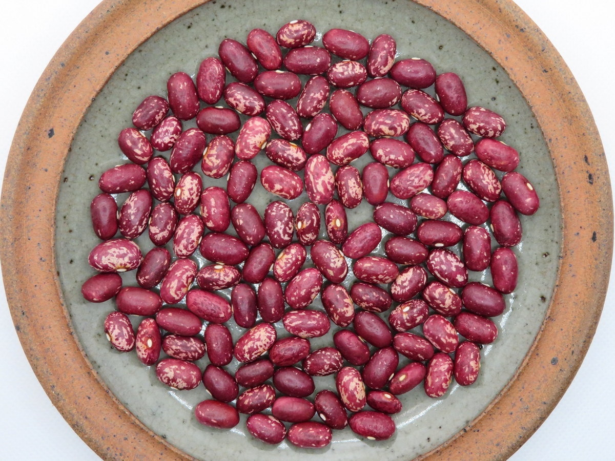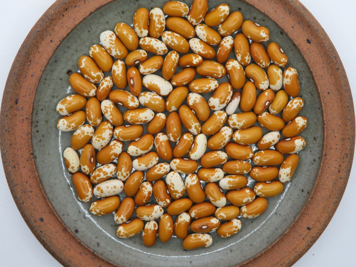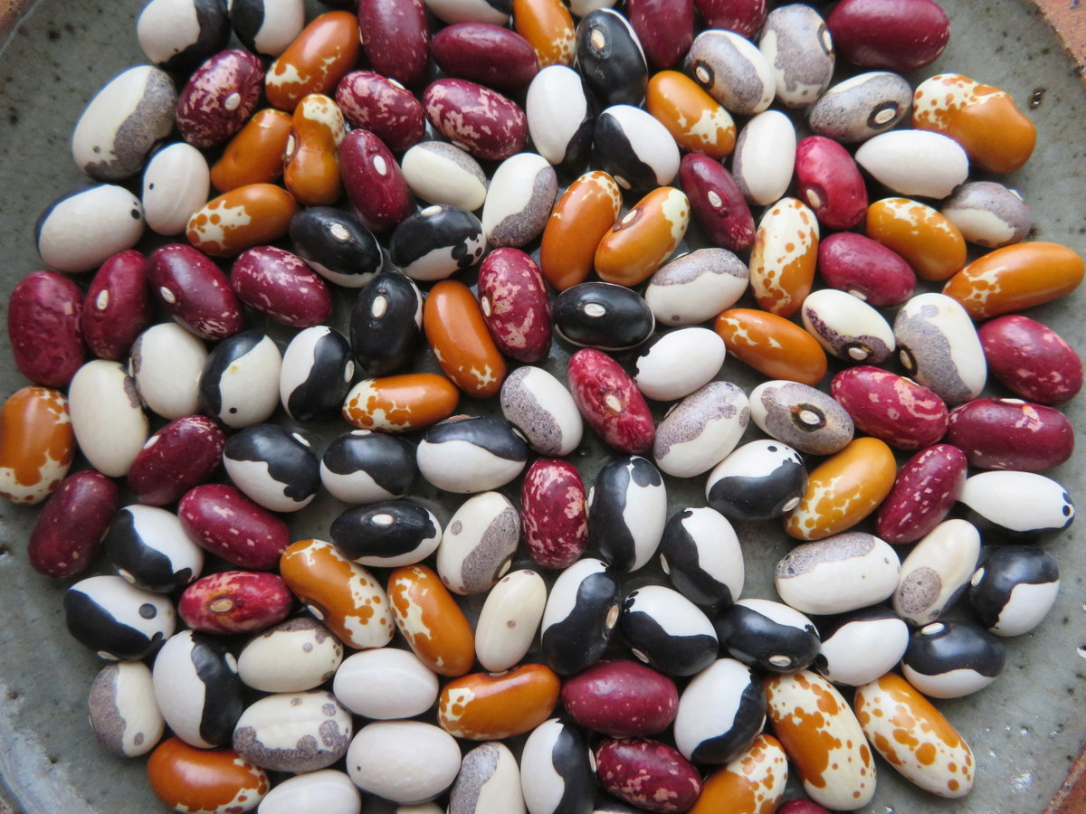 A blend of four varieties of dry beans. Calypso (black and white), Dapple Gray (gray and white), Early Warwick (red) and Zuni gold (yellow and white). Compact plants, 40 to 50 cm tall.