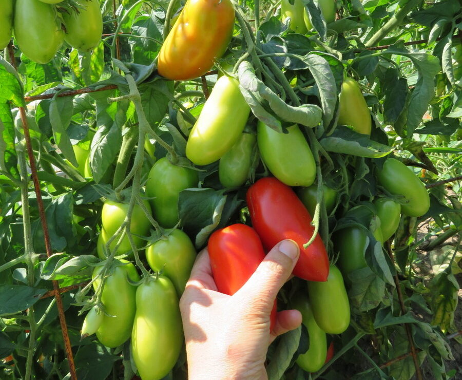 Superb 6-8 cm Italian tomato, very firm, few seeds, excellent quality for processing. Extremely productive. Small plant, 1 meter high. Good resistance to diseases. Early variety well adapted to zone 4. Determinate. 70 days to maturity.