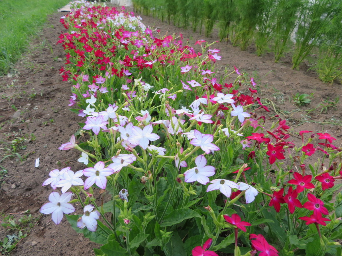 Annual. Ornamental tobacco with a dwarf plant 50 cm high. Slightly fragrant at dusk. Mixture of red, mauve, dark pink, pale pink or white flowers. Intense blooming from July to September. Growing it is a gift for the eyes and pollinators. Well adapted to container gardening.