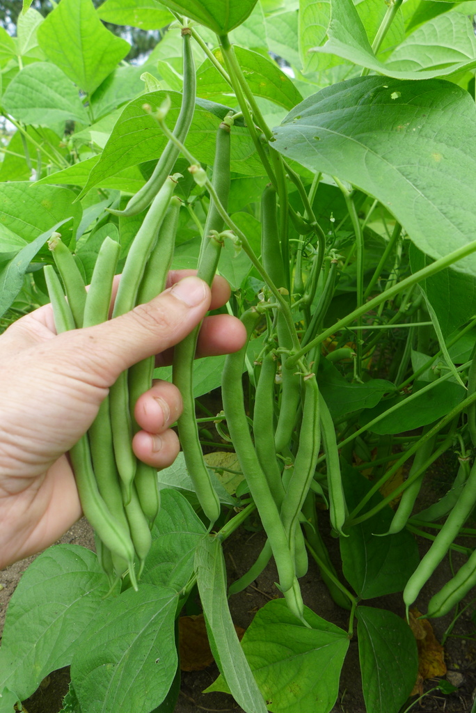 Bush snap bean. Green, round, fleshy pods, 13 to 15 cm, excellent flavor. Plant height 50 to 65 cm. Good choice for freezing and canning. The brown beans, speckled with beige, can be used as dry beans. 1950 AAS winner. 50 days to maturity.