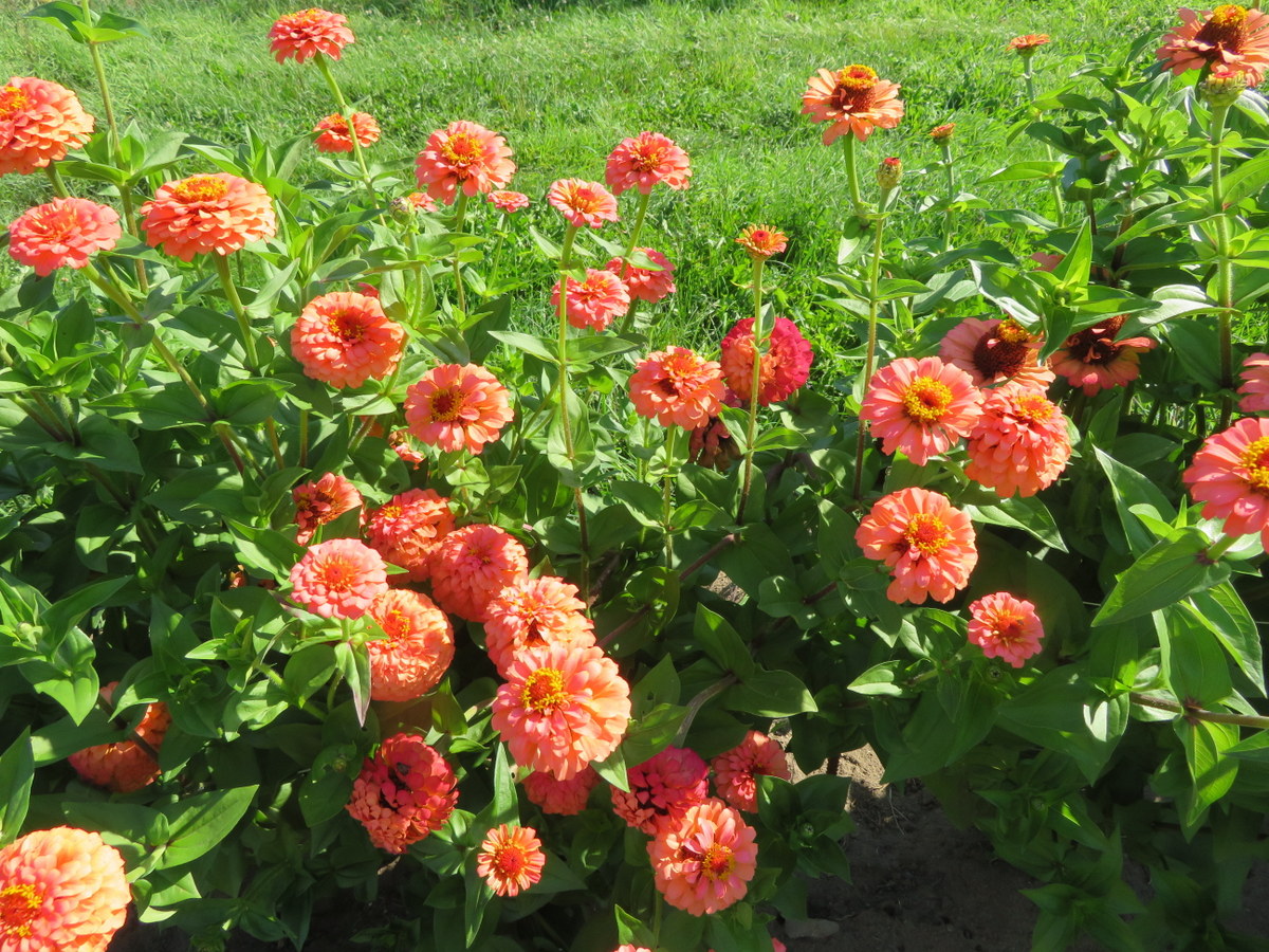 Annual. Salmon-pink flowers, 4 to 6 cm in diameter, double or semi-double. 1 m high and as wide. Strong stem, needs no support. Blooms from July to frost. Excellent cut flowers.