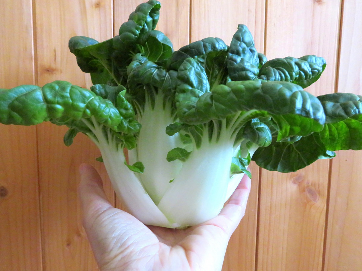 Mini Bok Choy. Feuilles vert foncé un peu fripées. Pétioles blancs, courts et larges. À récolter entre 6 et 15 cm de hauteur. N’aime pas les chaleurs d’été, à cultiver en début et fin de saison. Réussit bien en culture intérieure et aéroponique. 35-60 jours.