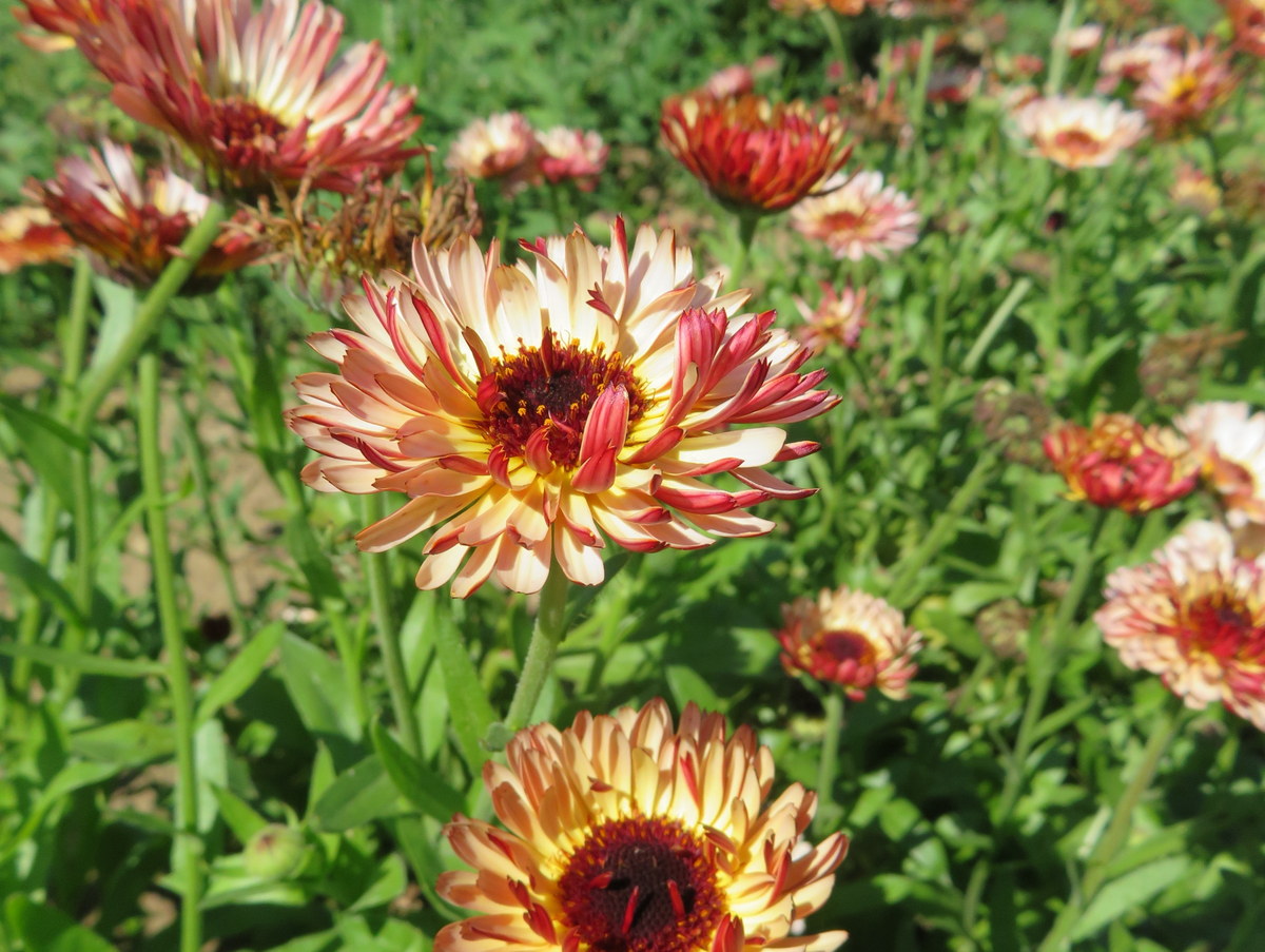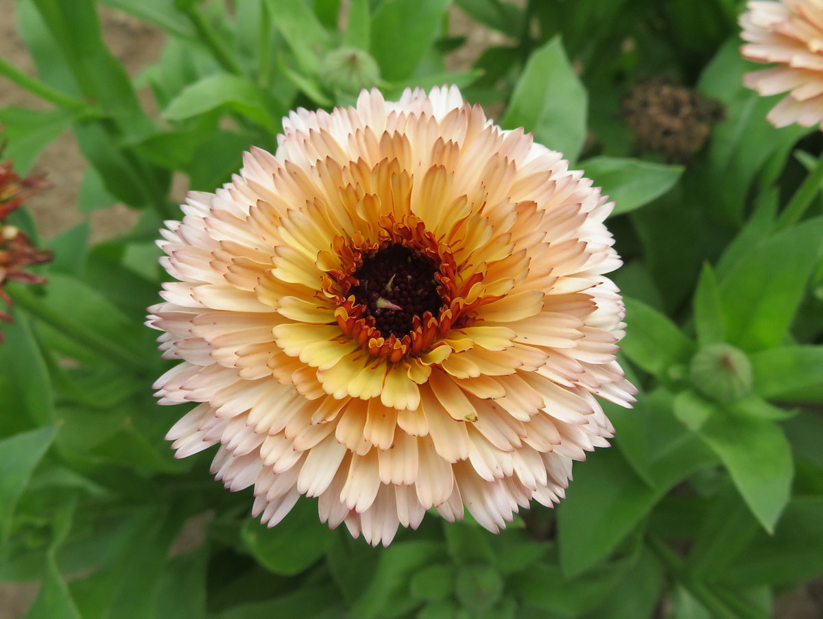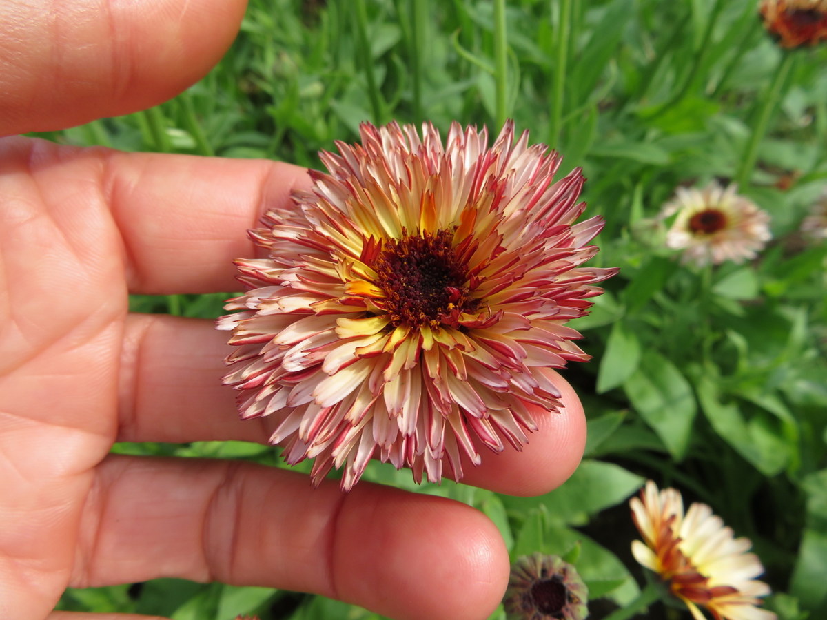 Annuelle. Fleurs doubles, de couleur rose jaune orangé, avec une touche de rouge pourpré. 40 à 60 cm de hauteur et autant en largeur. La floraison commence tôt et continue jusqu’au gel. Excellente fleur coupée. Se ressème parfois.